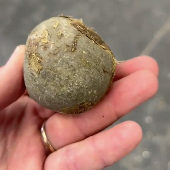 Here is a picture of a plum sized enterolith that was found in the manure of a horse.
