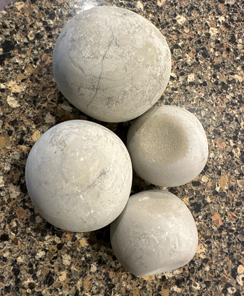 In this case the owner elected to do preventative colic surgery and remove the stones. Here is a picture of the stones that were removed. Three are the size of a baseball.