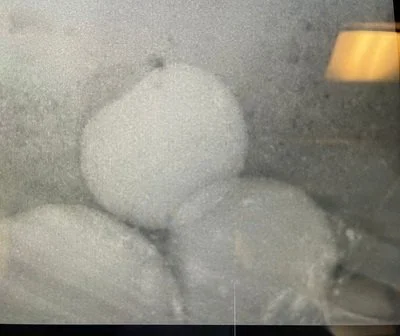 Here is the x-ray from the horse that passed the plumb sized enterolith pictured above.