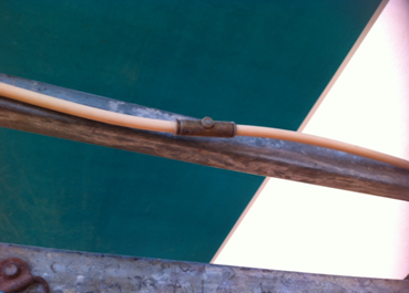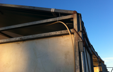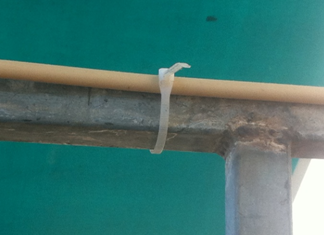 Cable ties used to secure the misting system's hose to top rails of portable stall.