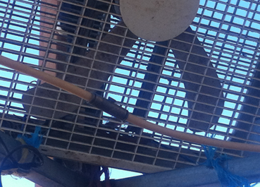 The first element is a box fan. You can purchase a metal devices for holding the box fan or use baling string to hold it in place.